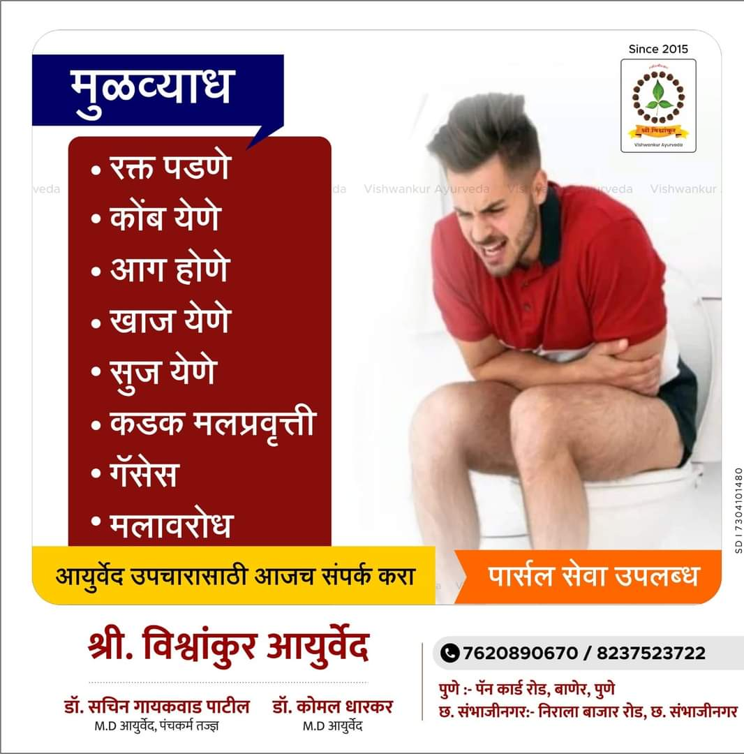 Ayurvedic treatment for Piles Piles is a painful condition affecting the anal region causing inflammation. Causes • Acidity • Indigestion • Gases • Irritable bowel syndrome • Spicy, salty food intake • Low fibre diet • Bakery and fermented food intake • Chronic constipation leading to straining • Obesity • Pregnancy • addiction • bakery products • Faulty food habbits • Irregular meals lead to indigestion and further develops constipation, which when becomes chronic develops piles or hemorrhoids Symptoms Inflammation, Bleeding stools, Itching, Anal Pain, Discomfort, Abdominal pain, Severe weakness, Gases, acidity, Constipation, Anemia Ayurveda considers piles as Arsh where faulty food habbits lead to agnimandya (indigestion) and imbalance of doshas viz vata, pitta and kapha. Ayurveda has the most effective treatment for piles. Nidan parivarjan - to avoid causative factors Aushadh chikitsa - medicines like tiphala, haridra, eranda etc Panchakarma - Basti panchakarma and procedures like pichudharan , awgaha etc can definitely reduce the piles. If you are looking for treatment, visit Vishwankur Ayurveda And Panchakarm Clinic . It is the best ayurvedic clinic near me, best ayurvedic doctor near me, best ayurvedic clinic in Baner Pune. Best Panchakarm Clinic near me.