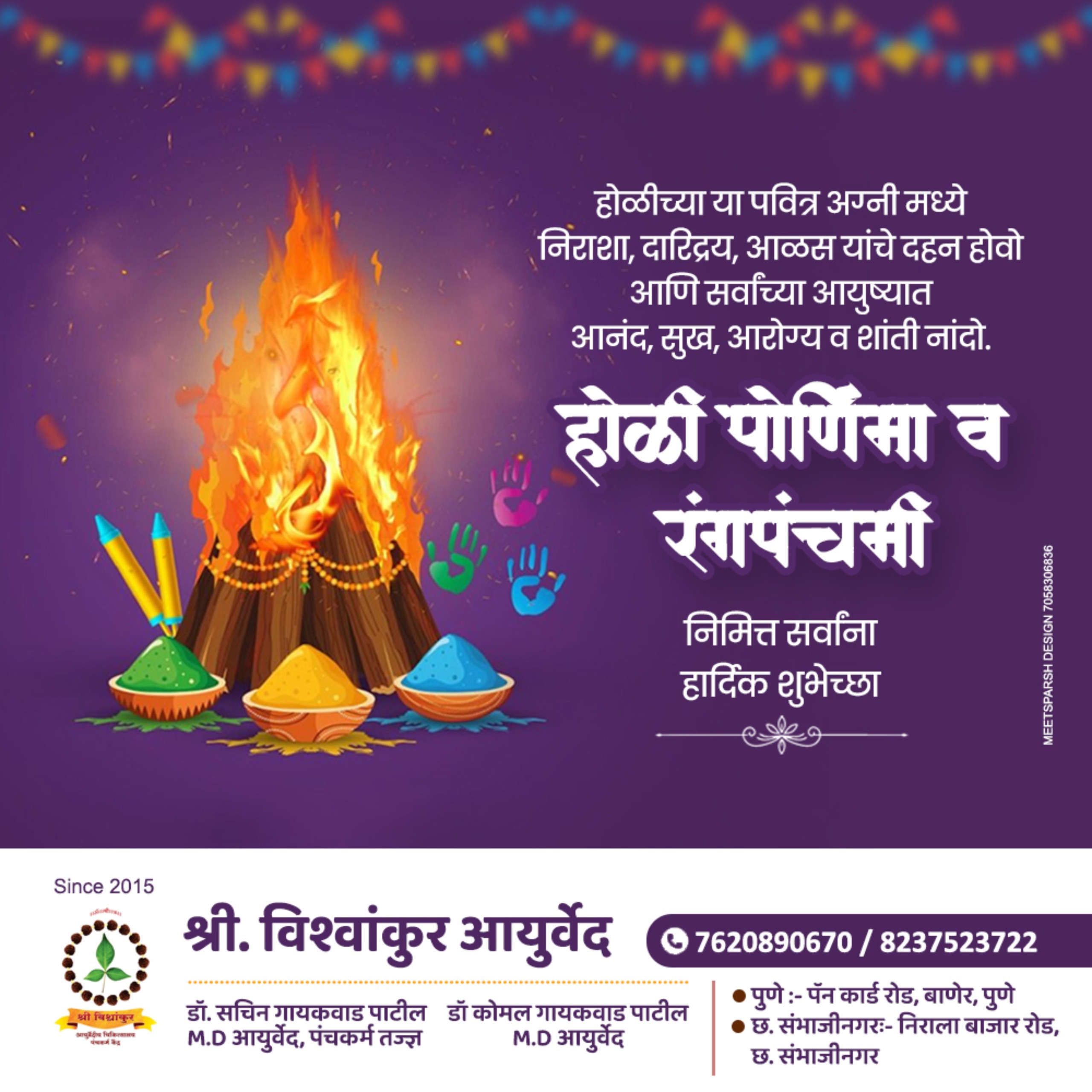 Holi, the festival of colors, is a time to celebrate joy, positivity, and good health! At Vishwankur Ayurveda & amp; Panchakarma Clinic, we believe in the power of Ayurveda to bring balance to your mind, body, and spirit—just like the vibrant colors of Holi!